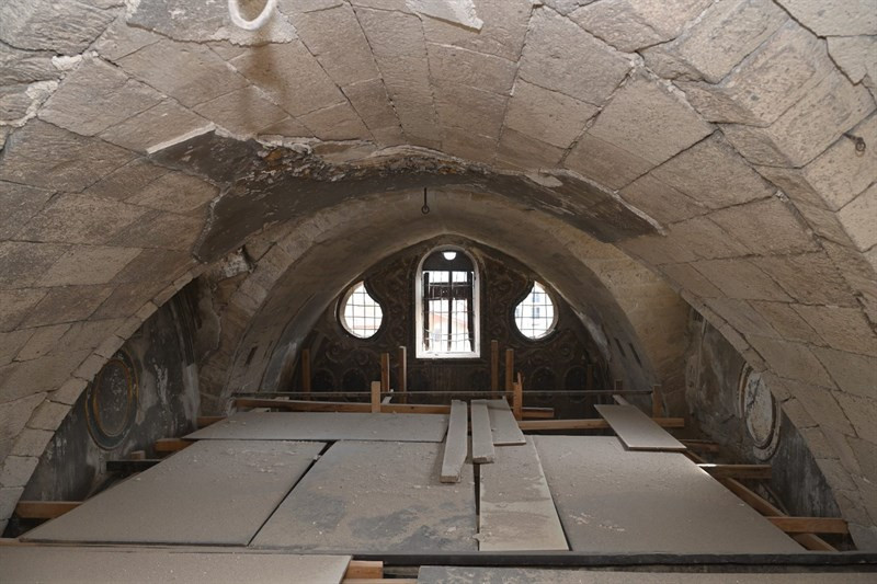 Kilisenin cephelerinde yürütülen kumlama çalışmaları tamamlanırken, çatı üzerindeki kiremitlerin toplanması ve aktarımı da başarıyla gerçekleştirildi. Ayrıca şantiye kapsamında cephe iskelesinin kurulumu da tamamlandı. Yapının müze bölümünde ise ahşap ikon perdelerinin temizliği titizlikle sürdürülüyor.